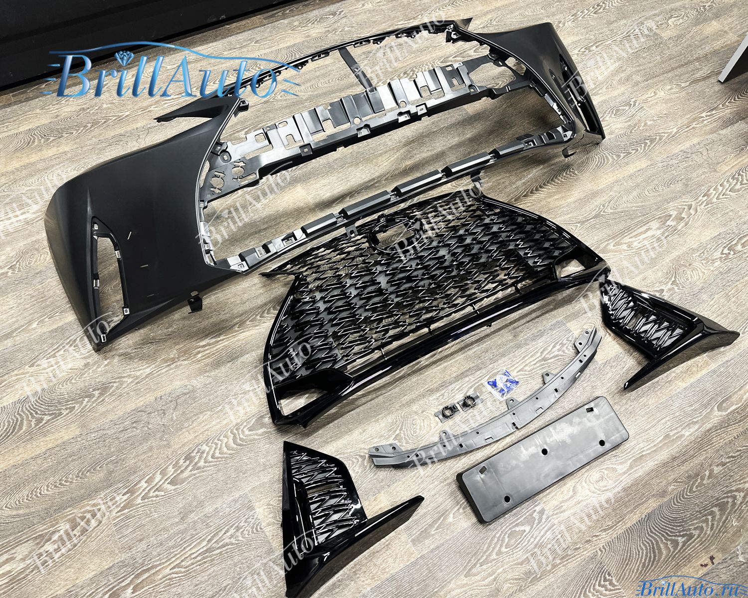 - верхняя накладка, подиум под номер, кронштейны парктроников, крепеж
