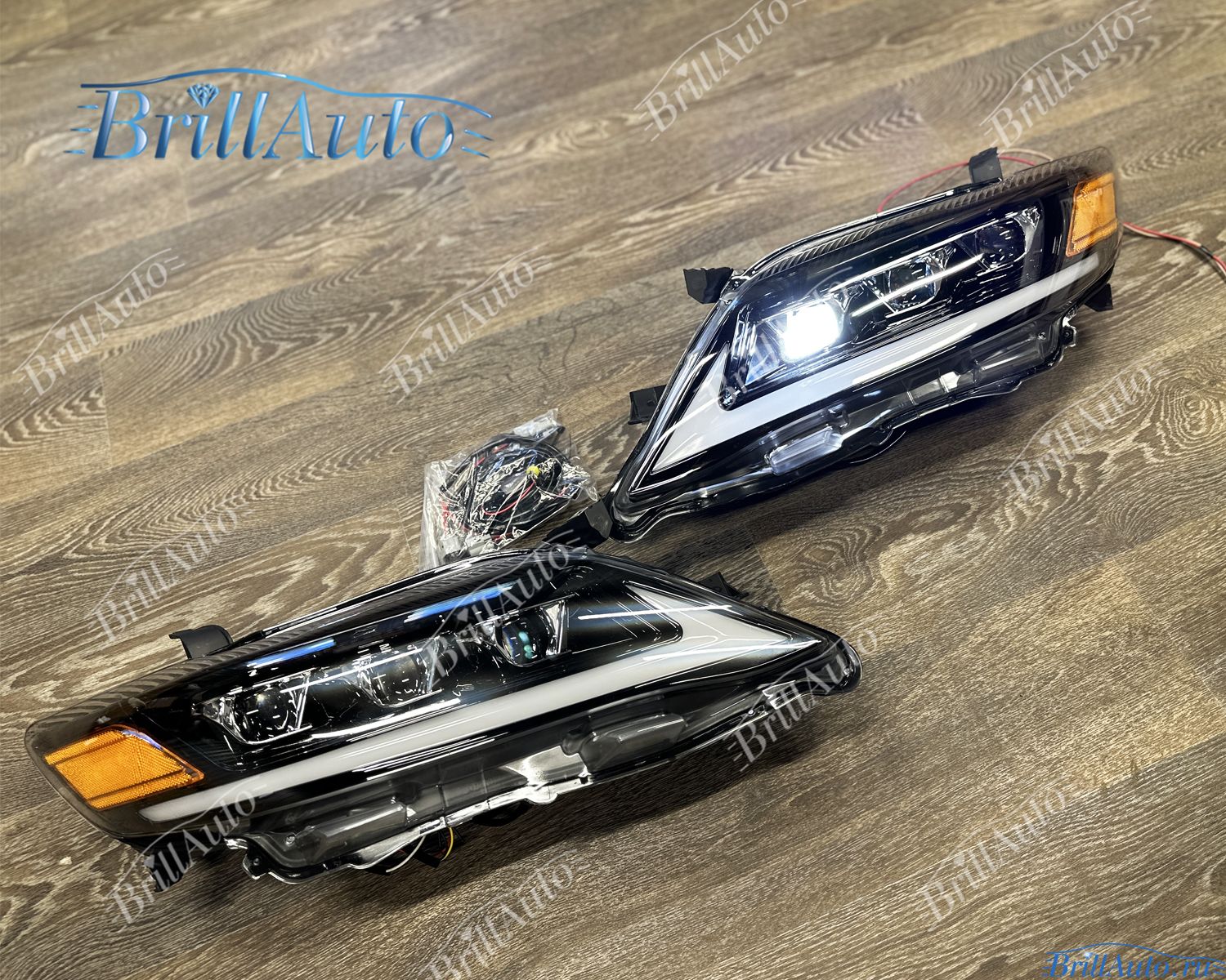 НОBЫE пepeдниe светодиодные фaры Тойота Камри 40 в стиле Лексус на кузов XV40 (рестайлинг 2009-2011 года) 2009, 2010, 2011 гoда с ходовыми огнями и бегающими поворотниками. Полностью cвeтодиoдные LЕD c 3 линзами на ближний и дальний свет!