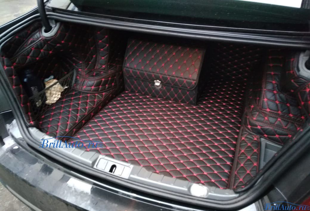 Защиту багажного отделения обеспечивают 3D коврики в багажник BMW 5 series, закрывающие всю тканевую обивку или, при Вашем желании, отдельные ее части. Экокожа надежно крепится к обивке багажника, не скручивается и не теряет форму, легко протирается и моется. В дополнение ко всему этому Вы можете заказать стильные кофры-органайзеры разных размеров!