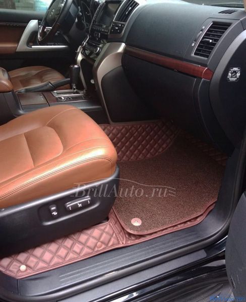Комплект 5D и 3D ковриков в салон Toyota Land Cruiser 200 из экокожи. Изготавливаются 3D коврики из эко кожи Ленд Крузер 200 вручную для авто любого года выпуска.
