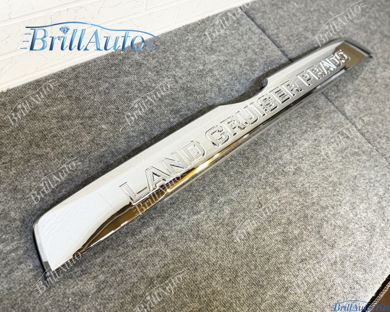 Накладка на 5 дверь land Cruiser Prado 150 хром / никель на багажник Прадик. Устанавливается на штатные пистоны. Хром планка/сабля на багажник Крузака 150 прадо, молдинг крышки багажника Prado 150 Рестайлинг 2