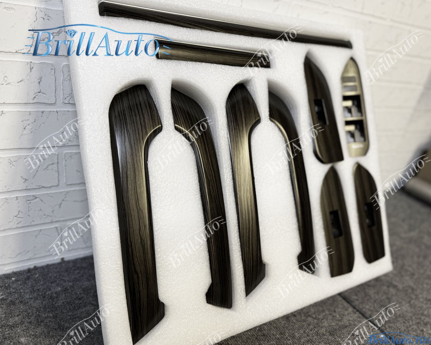 Накладки салона на ручки дверей под дерево на Land Cruiser Prado 150 2009-2022 года. Пластик салона на Прадо 150 под дерево подойдет на все авто с 2009 по 2022 ггод.