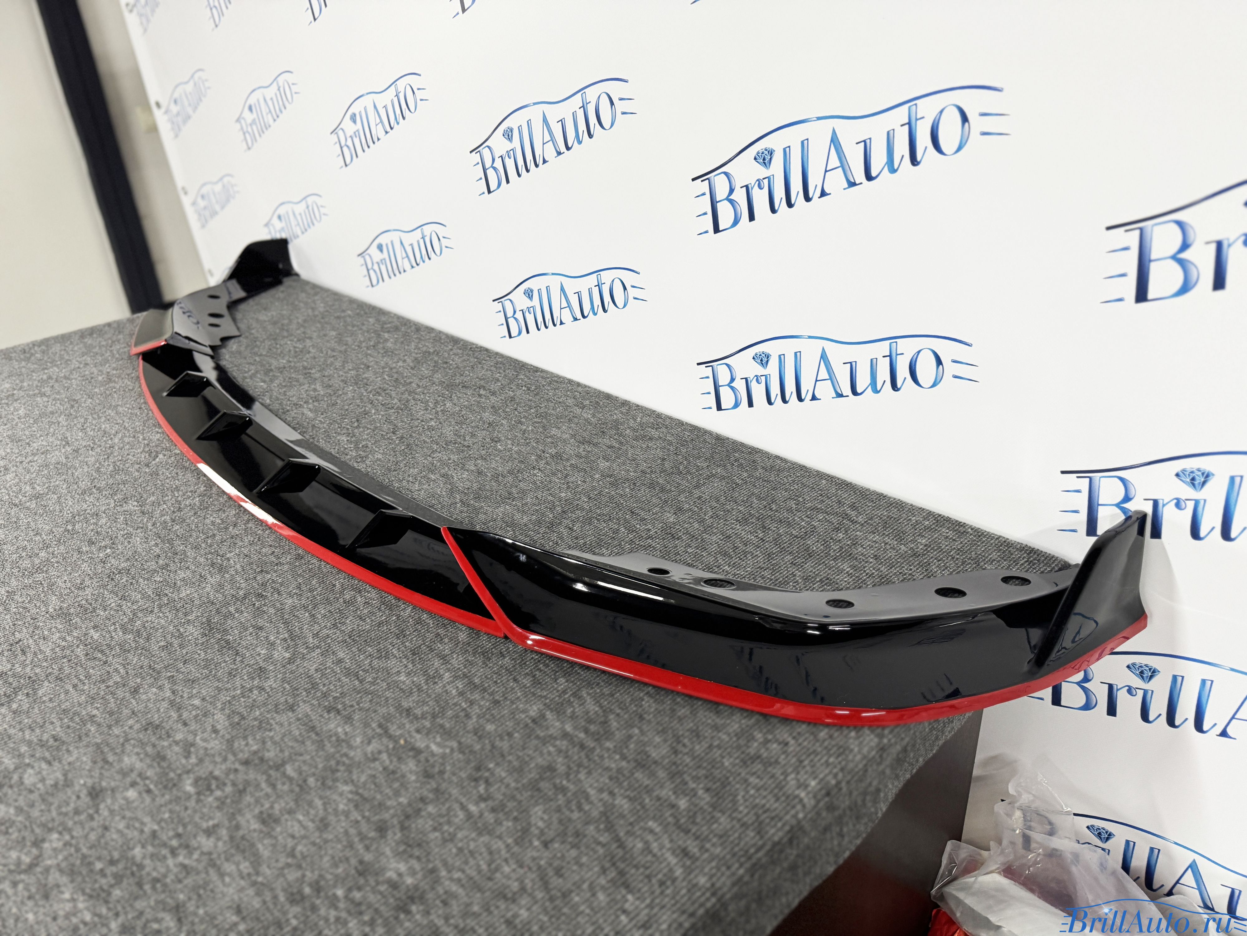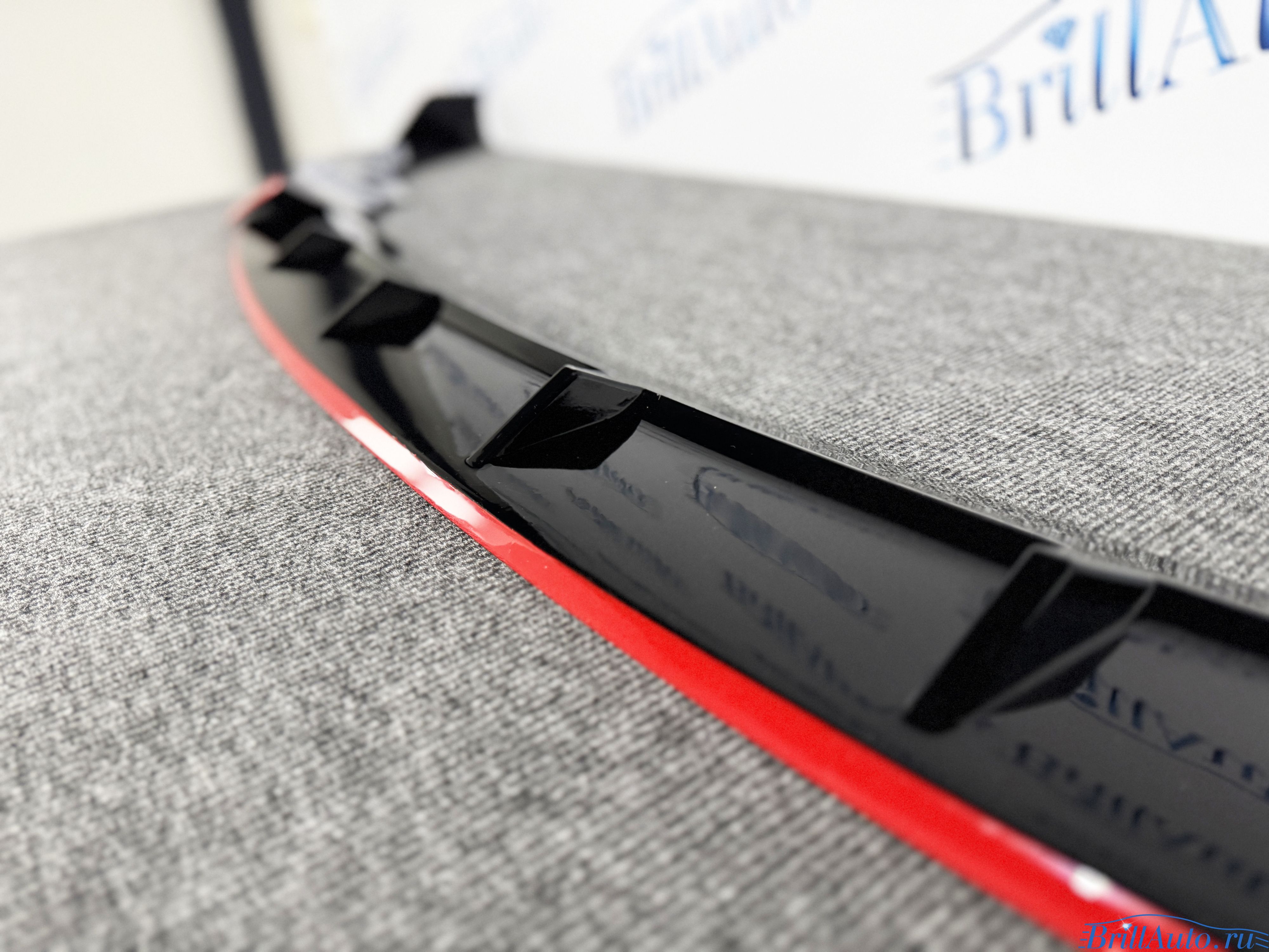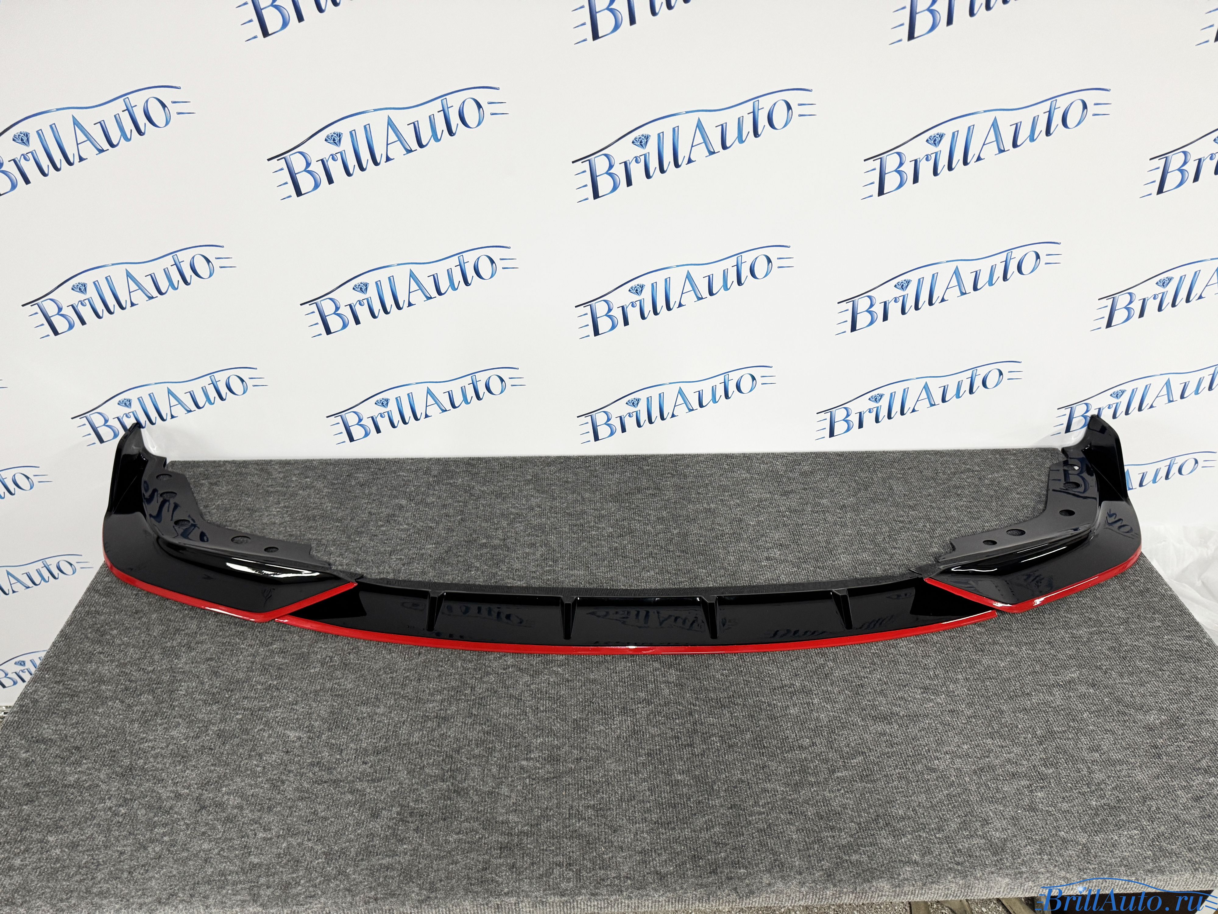 Новый обвес / сплиттер на БМВ 3 G20 в стиле M в черном цвете с красной полосой, широкий. Сплиттер на передний бампер BMW G20 M черный с красной полоской в широком исполнении подойдет на штатный бампер 2018, 2019, 2020, 2021, 2022, 2023, 2024, 2025 года.