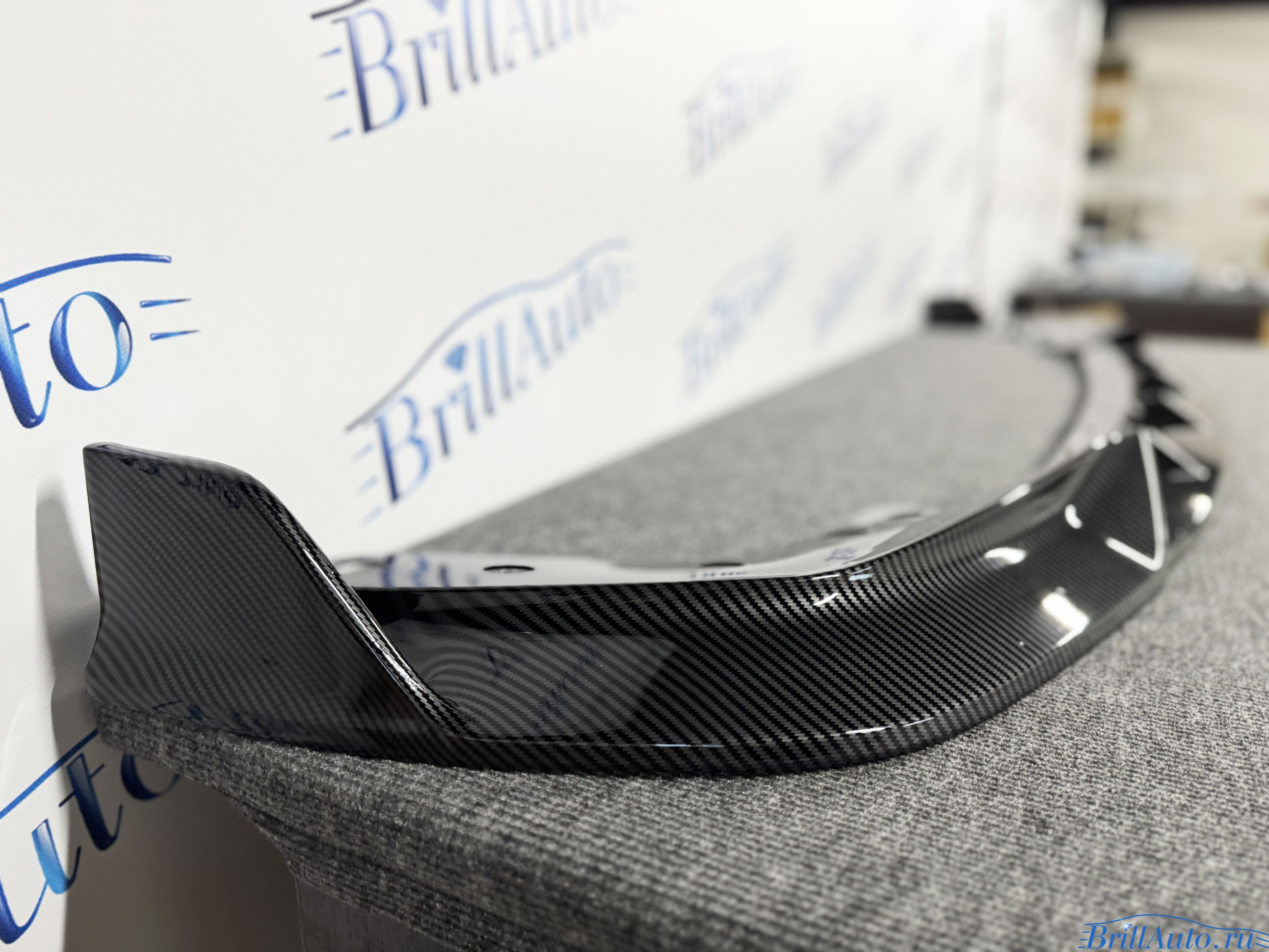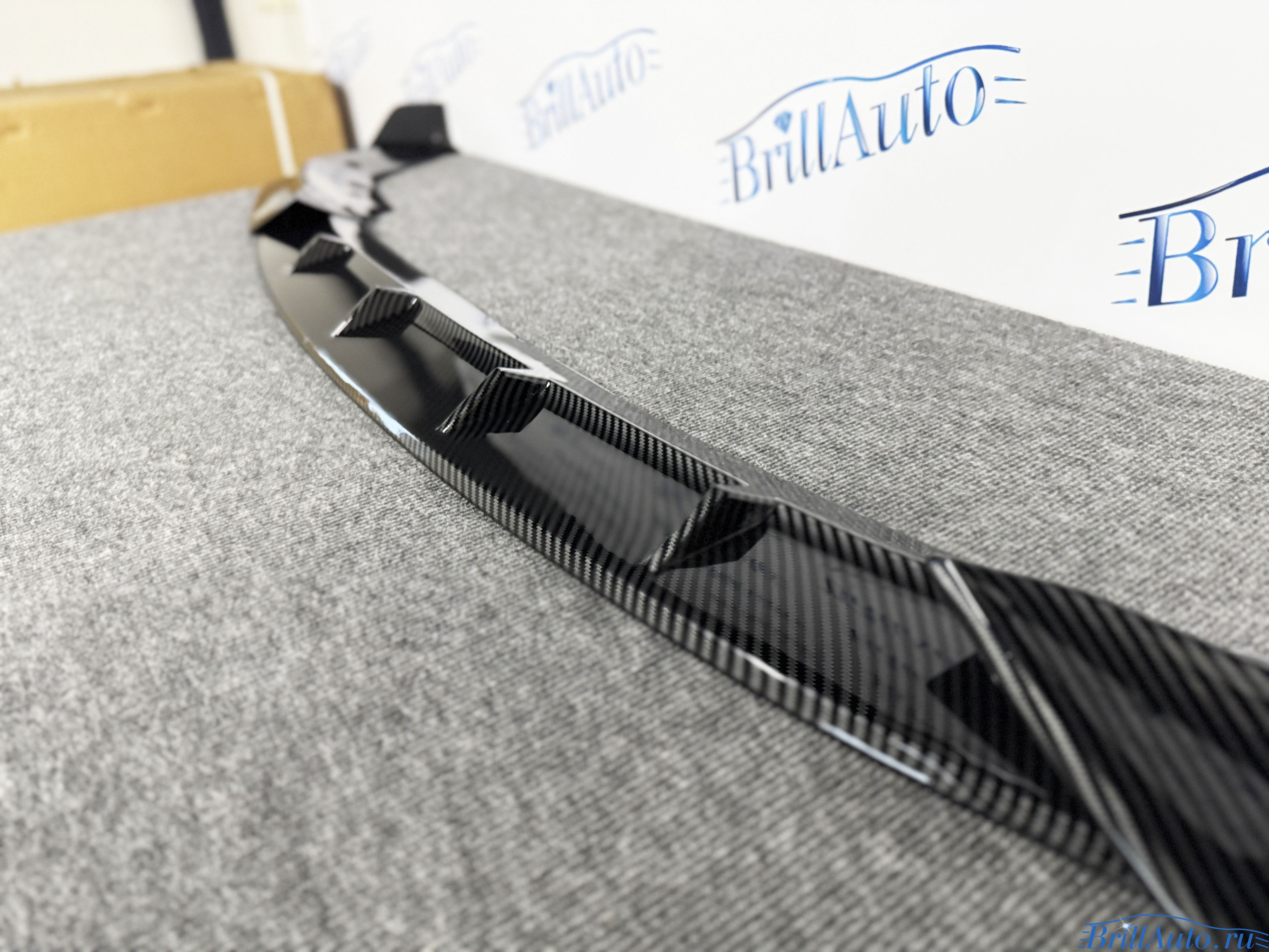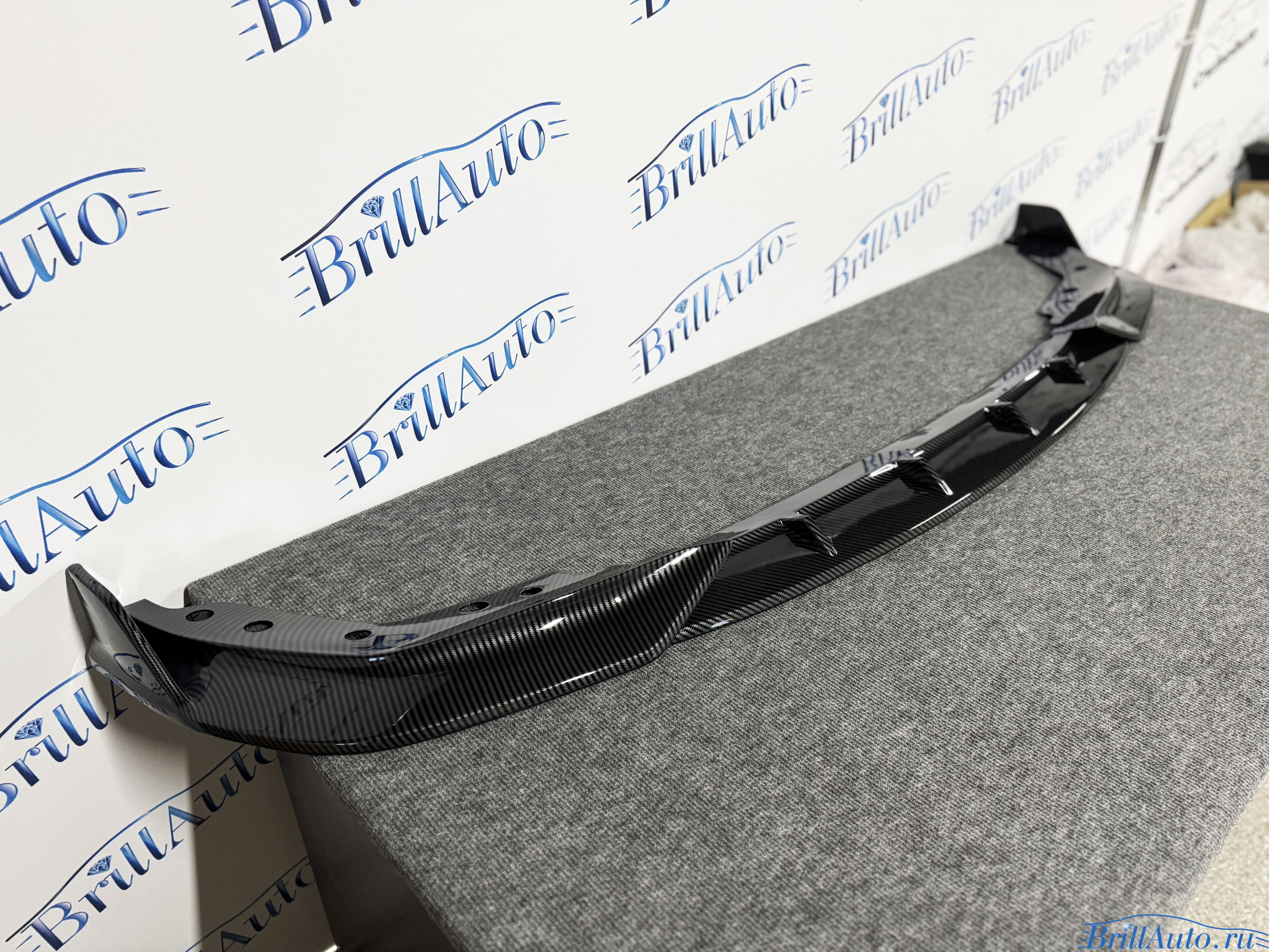 Новый обвес / сплиттер на БМВ 3 G20 в стиле M в цвете под карбон, широкий. Сплиттер на передний бампер BMW G20 M под карбон в широком исполнении подойдет на штатный бампер 2018, 2019, 2020, 2021, 2022, 2023, 2024, 2025 года.
