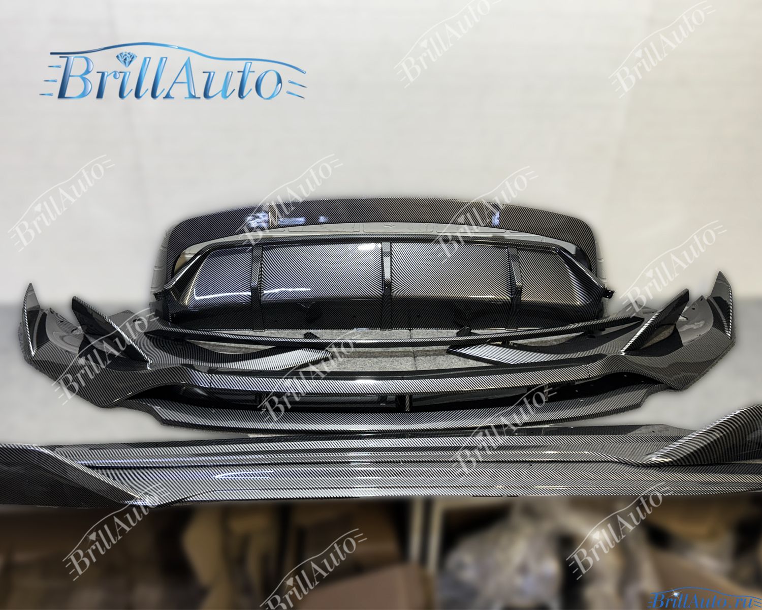 Полный комплект обвесов (диффузор, сплитер, спойлер) М-Перфоманс на X5 включает в себя все детали, как на фото выше.