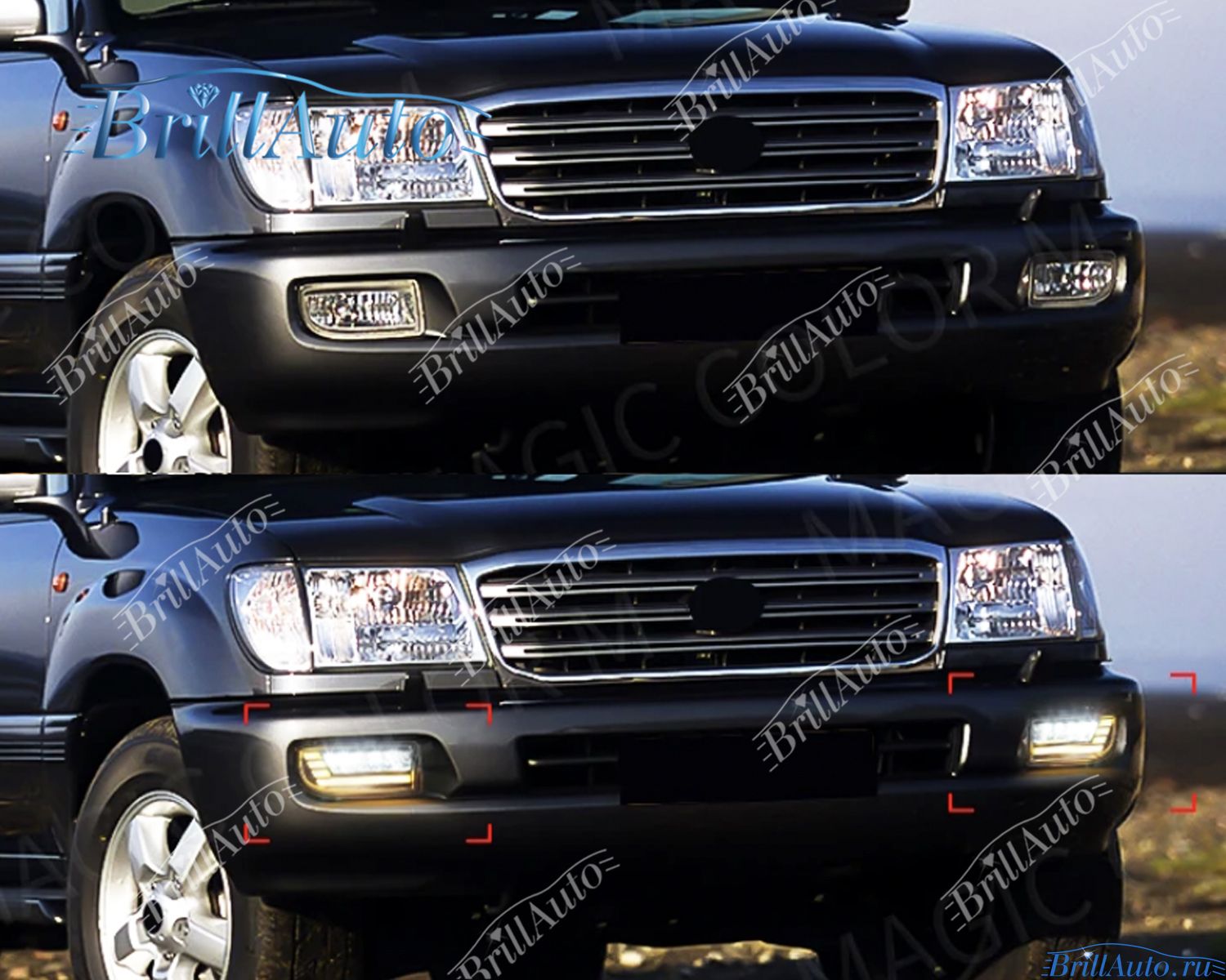 Передние туманки на Крузер 100 тюнинг подходят в штатные места без каких либо доработок.