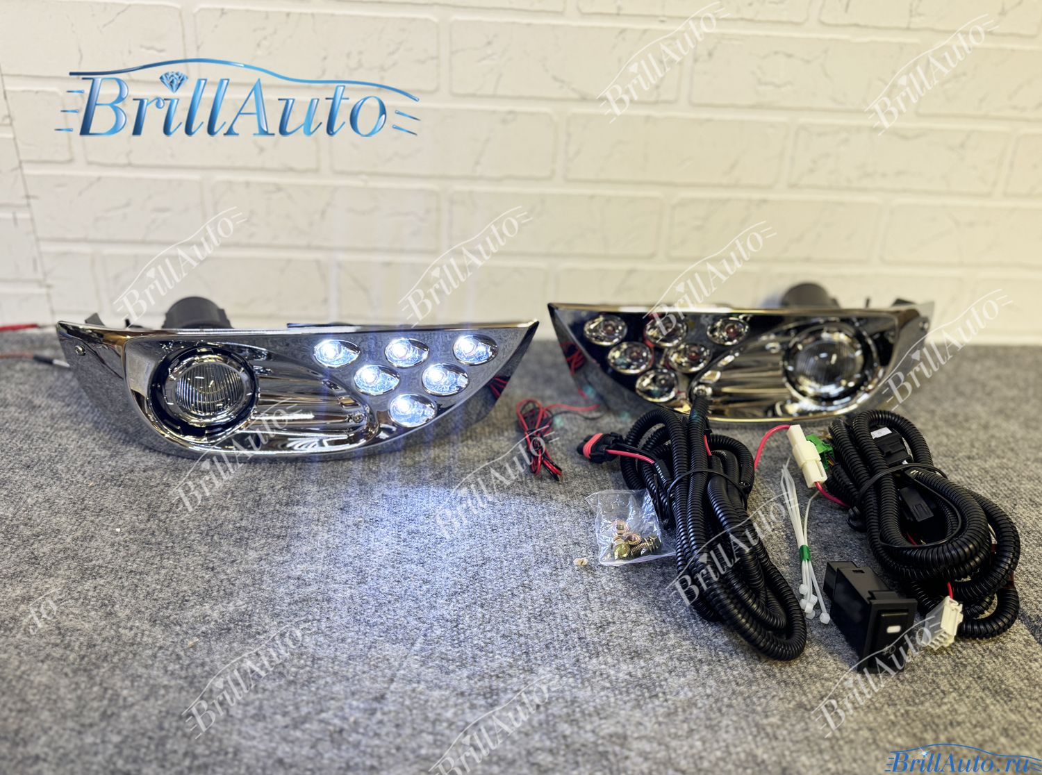 Противотуманные фары Прадо 120 02-09 с линзой и габаритными огнями (дневные ходовые огни). Противотуманки Prado 120 подходит на все года выпуска: 2002, 2003, 2004, 2005, 2006, 2007, 2008, 2009.