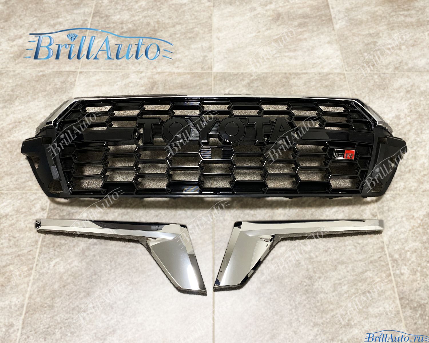 Решетка радиатора Ленд Крузер 200 с 2015 по 2021 г.в. в стиле 300 GR Sport с черными буквами ТОЙОТА.
