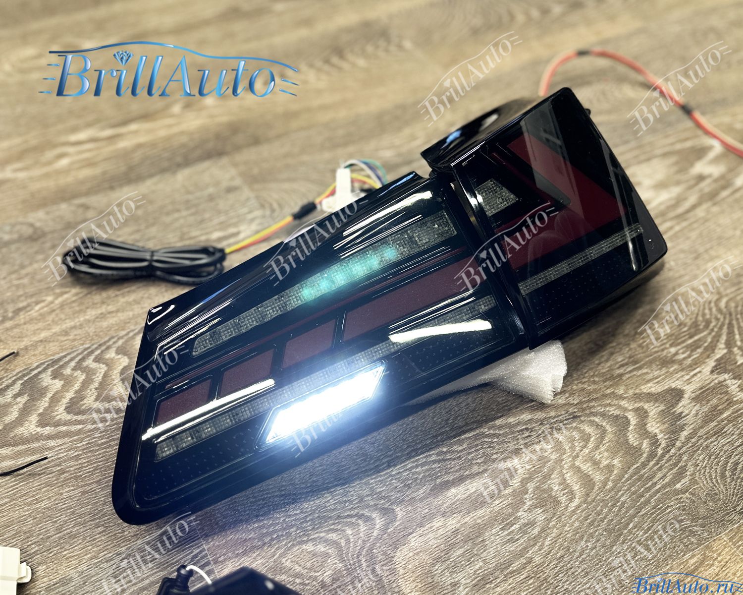 Светодиодные LЕD тюнинг задние фары Lexus IS 250 350 черные с тонировкой имеют приветственную анимацию при запуске. Габариты и стоп-сигналы дублируются в крышке багажника и в крыльях.