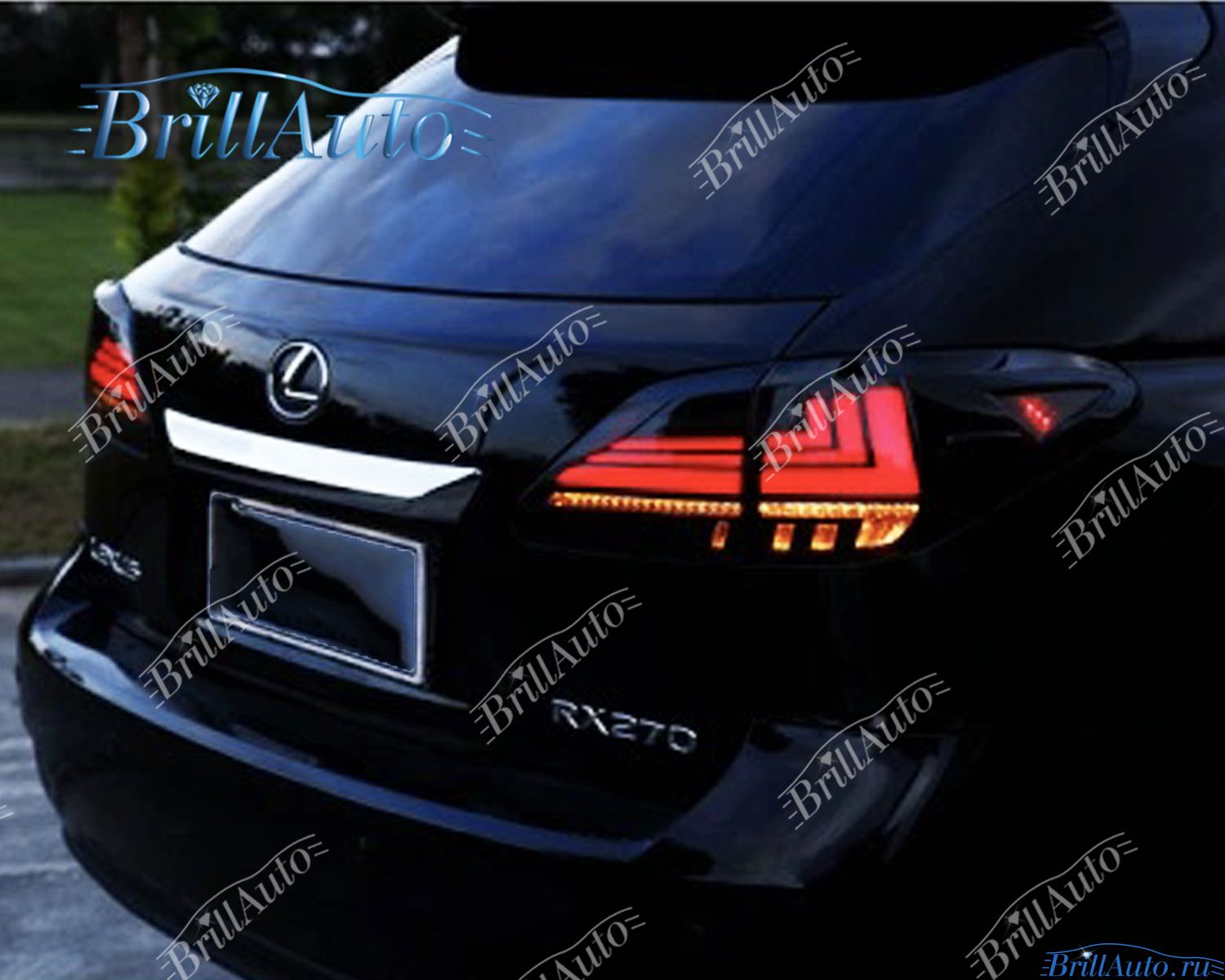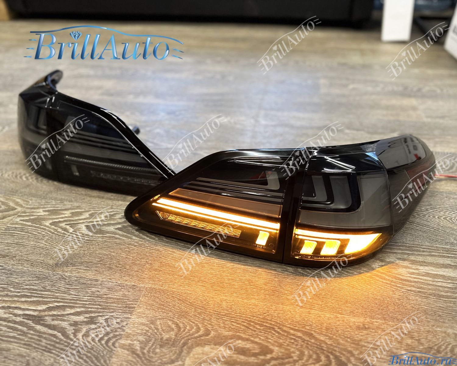 Задние фары Lexus RX тонированые черные оснащены бегающим поворотником. Стопы бегают от внутренних фонарей к внешним.