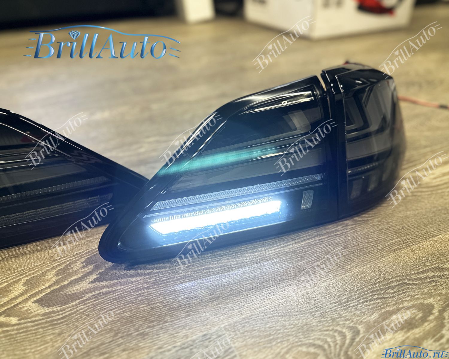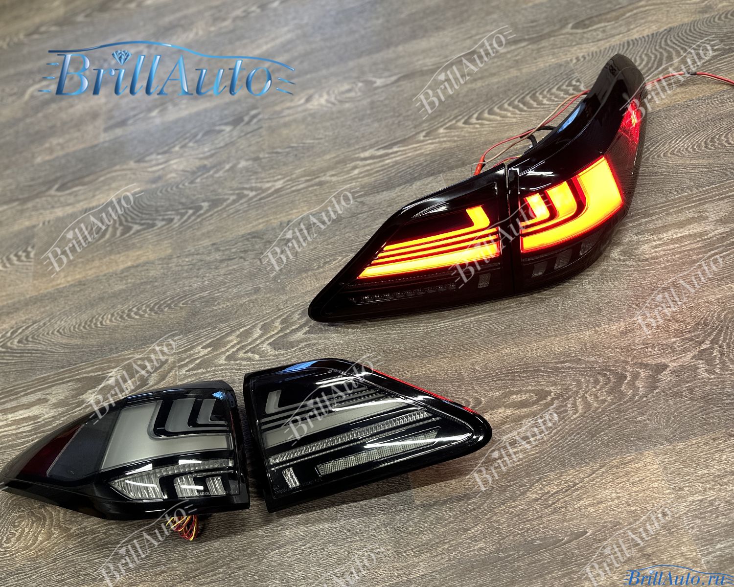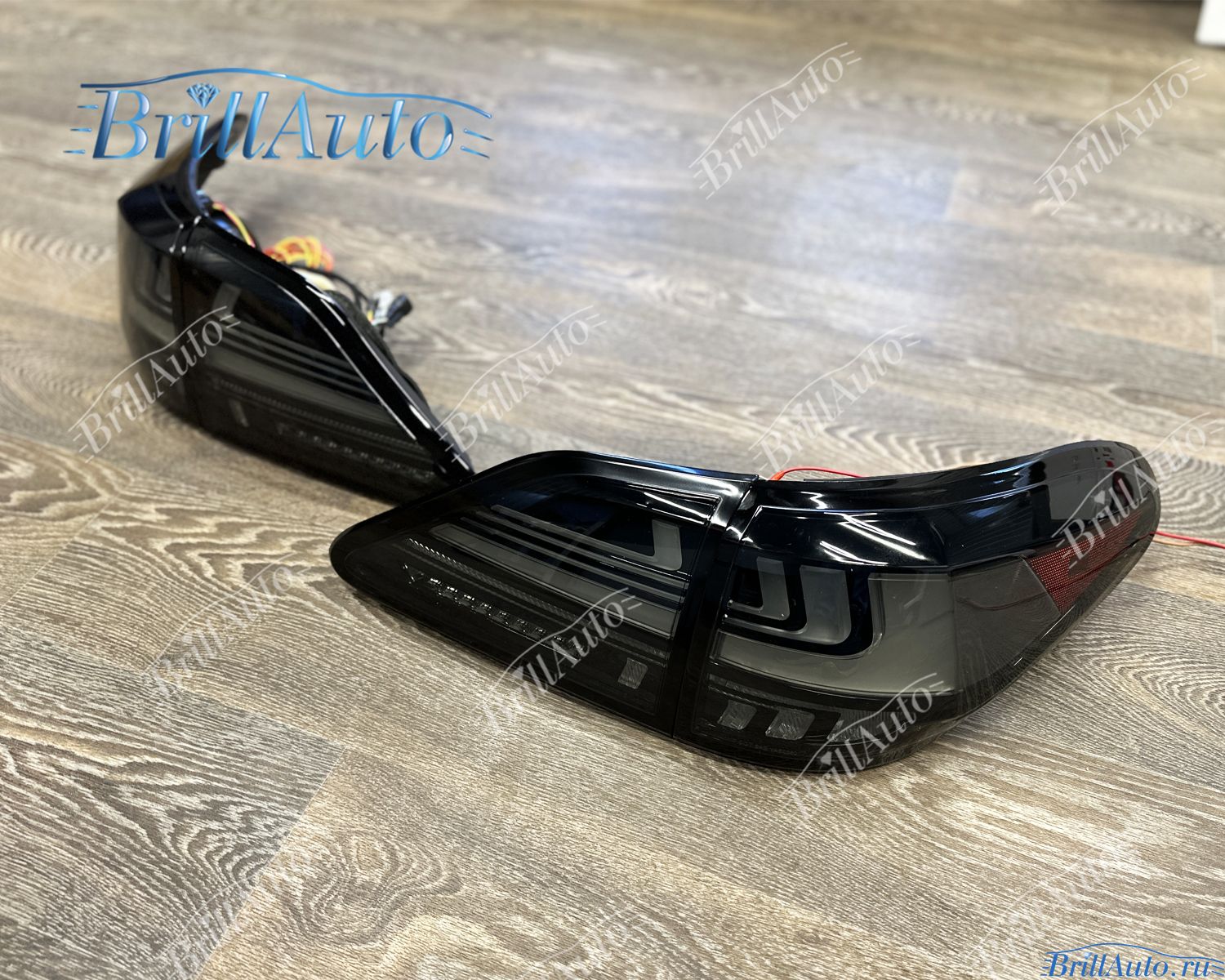 Светодиодные LЕD тюнинг задние фары Lexus RX 350 270 450 темные тонированные имеют приветственную анимацию при запуске. Габариты и стоп-сигналы дублируются в крышке багажника и в крыльях.