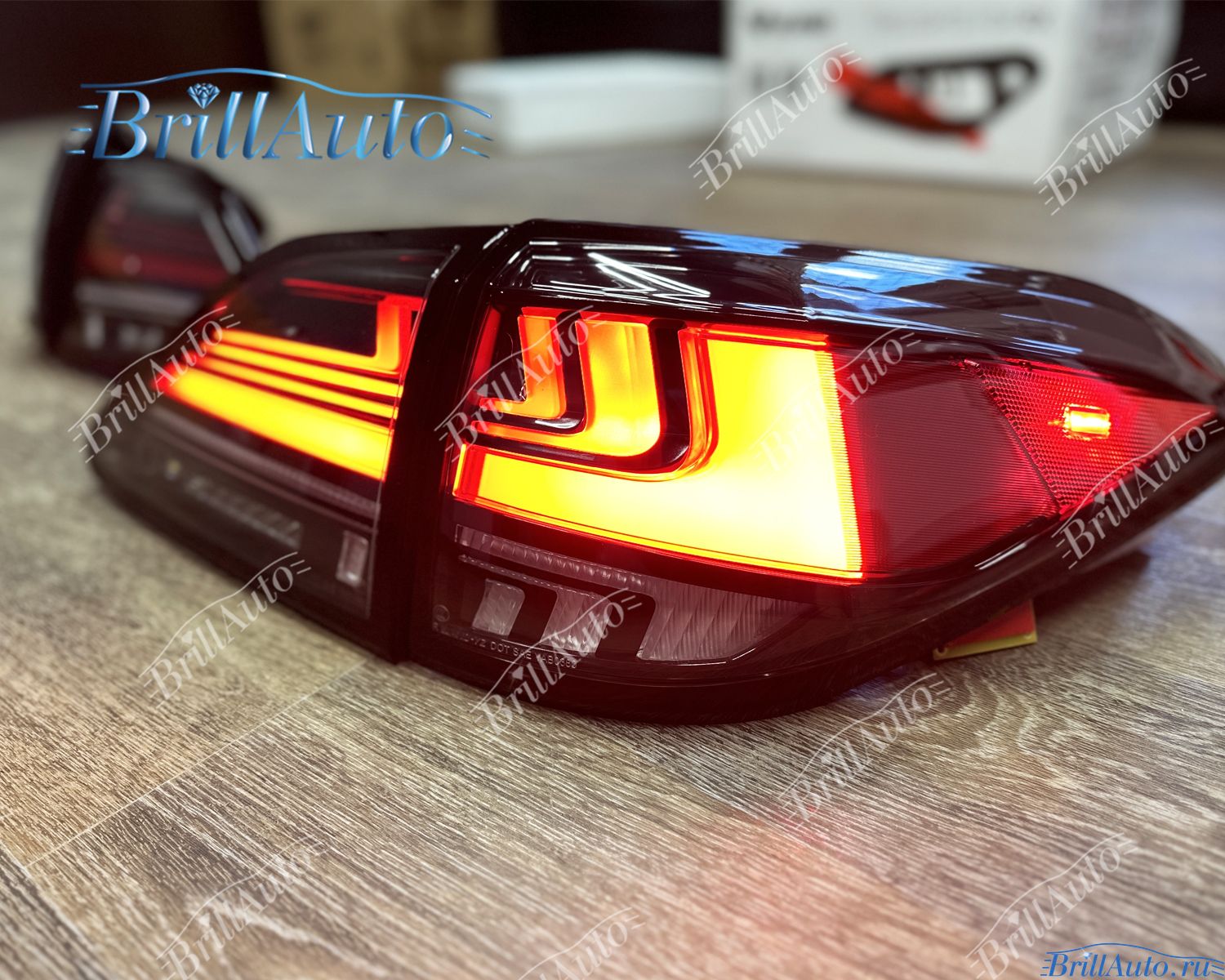 Задние фары Lexus RX тонированые красные оснащены бегающим поворотником. Стопы бегают от внутренних фонарей к внешним.
