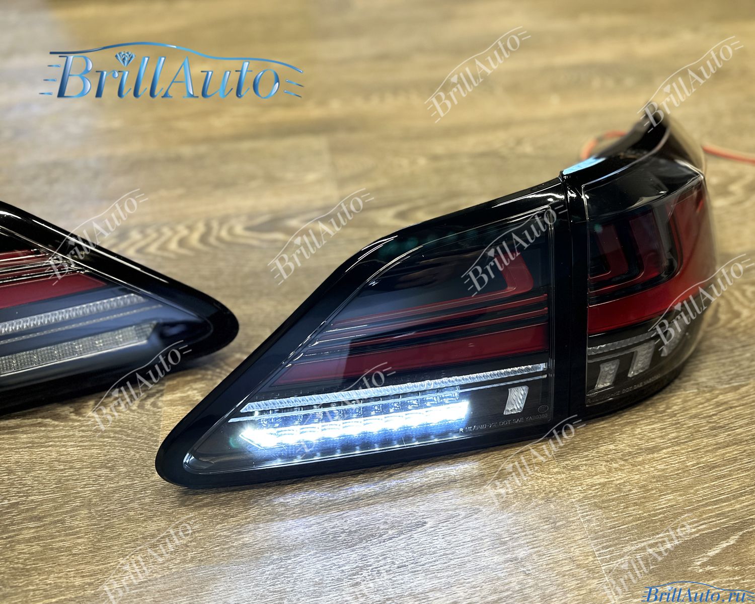 Светодиодные LЕD тюнинг задние фары Lexus RX 350 270 450 тонированные красные имеют приветственную анимацию при запуске. Габариты и стоп-сигналы дублируются в крышке багажника и в крыльях.